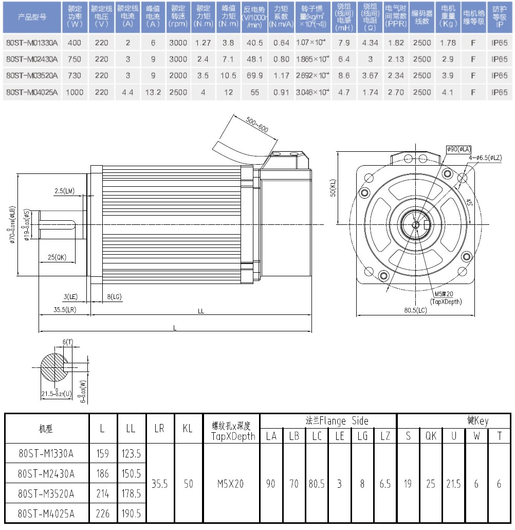 80系列伺服电机(功率范围:400W-1000W)为小功率,小惯量电机。主要应用于纺织机械,雕刻机,3D打印设备等精度要求较高的自动化领域。其特点为体积小,精度高,震动低,噪音小。